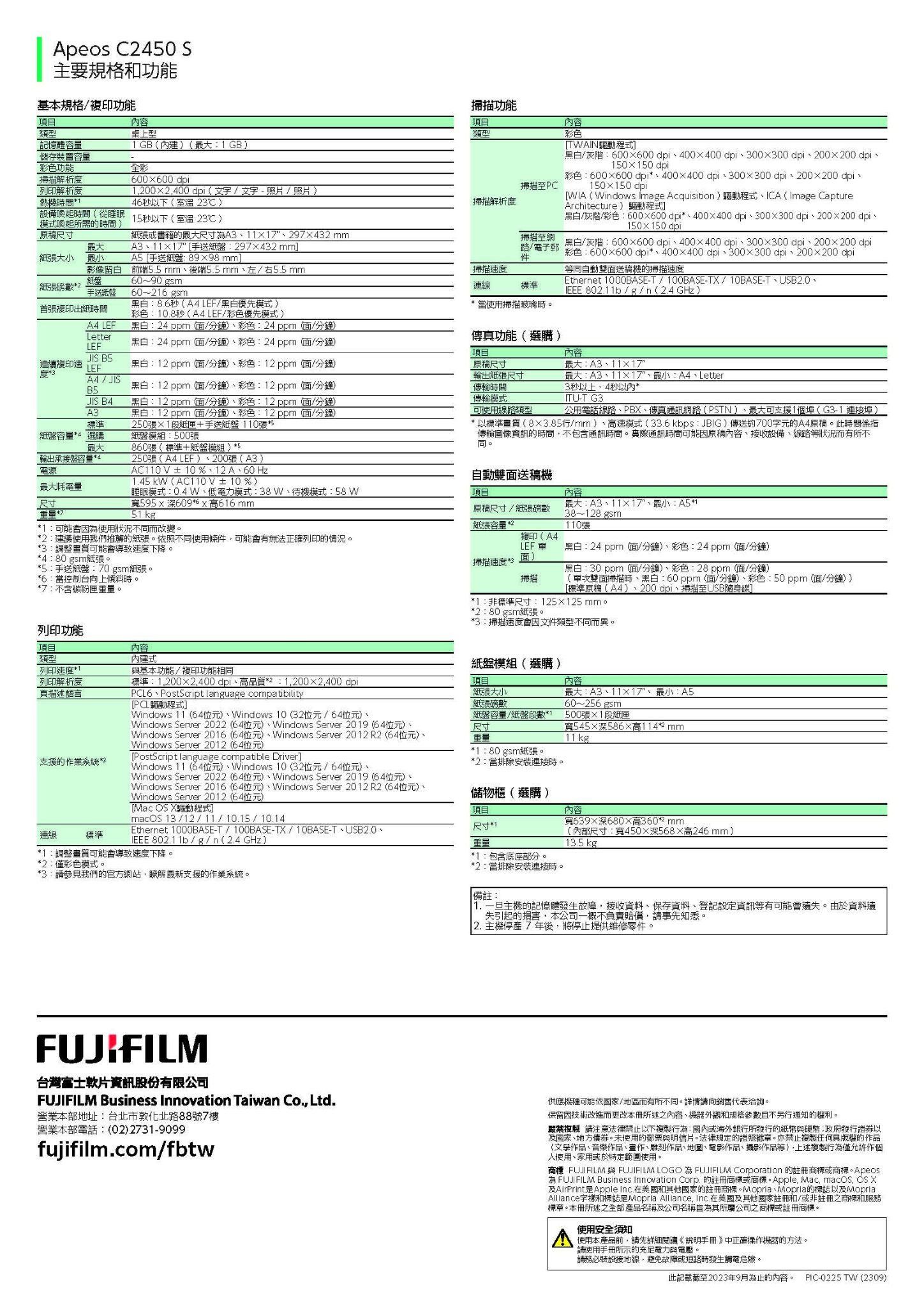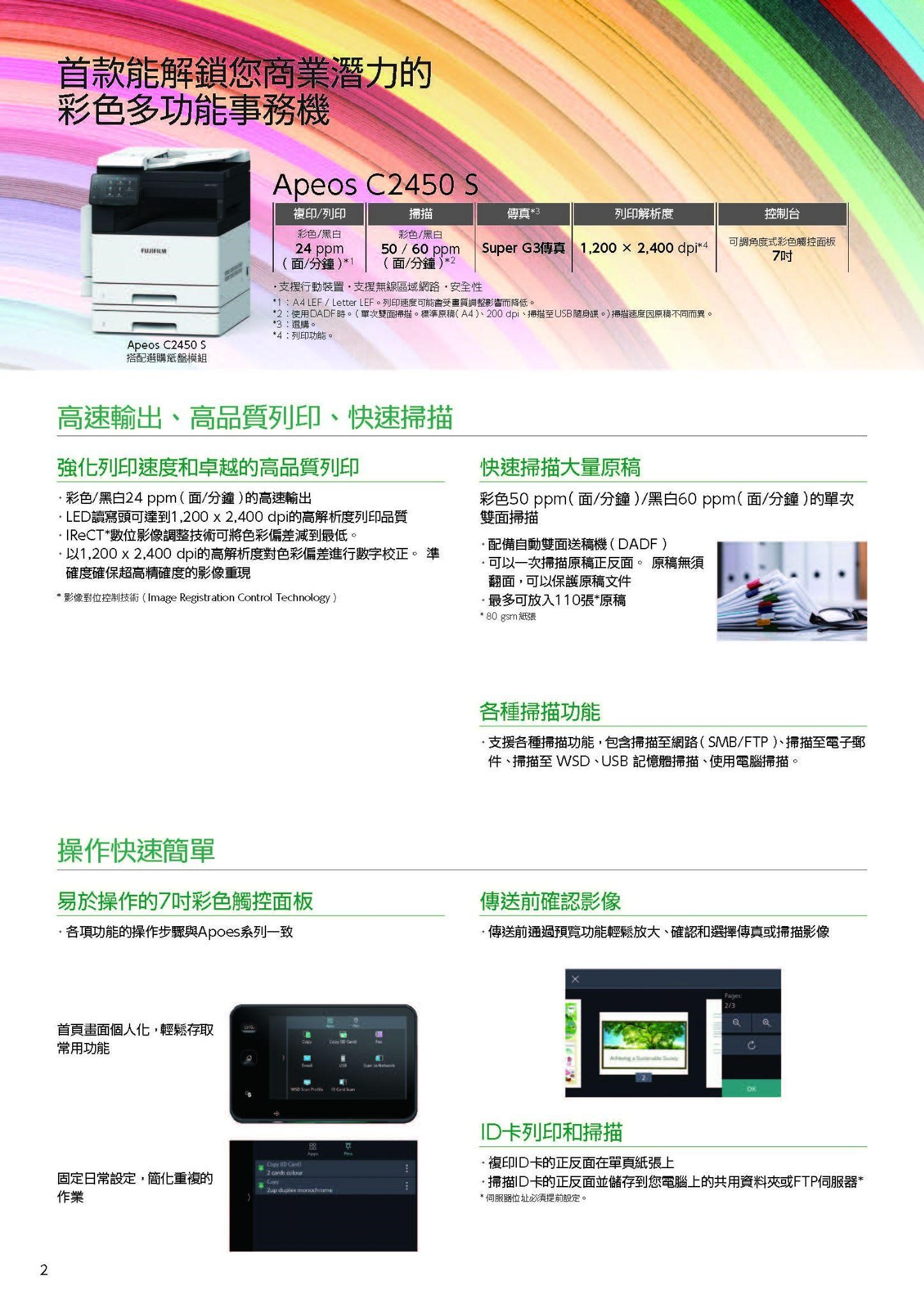 FUJIFILM Apeos C2450 S A3彩色影印機 官方型錄